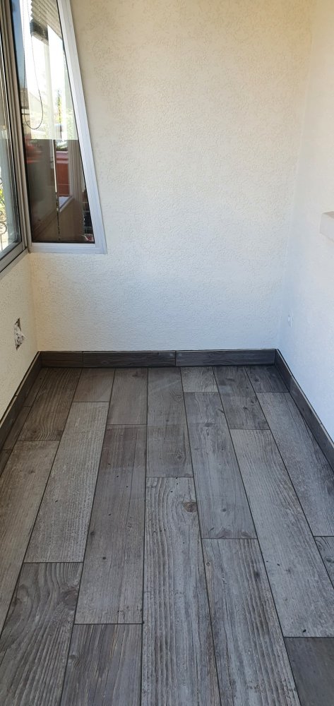 Les carreaux ont été posés avec précision, en respectant les alignements et les joints, pour garantir un rendu régulier et esthétique sur l’ensemble de la véranda.