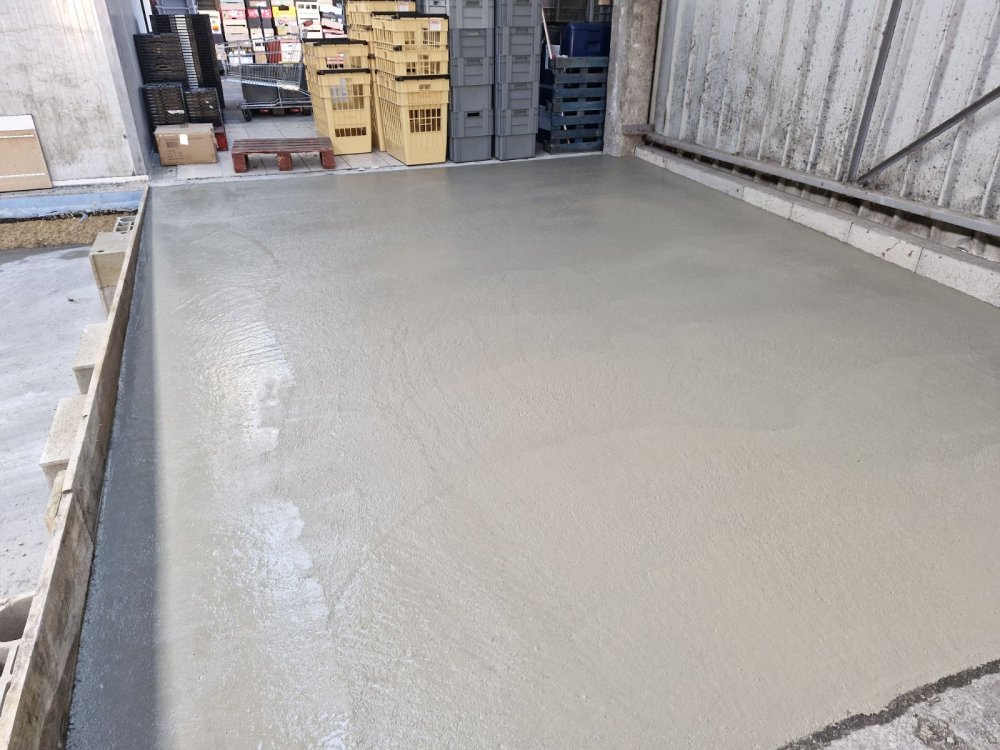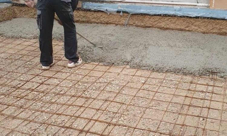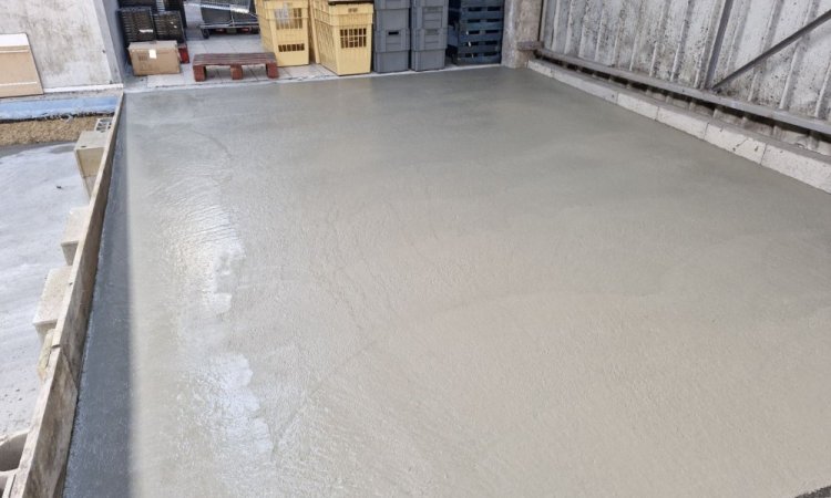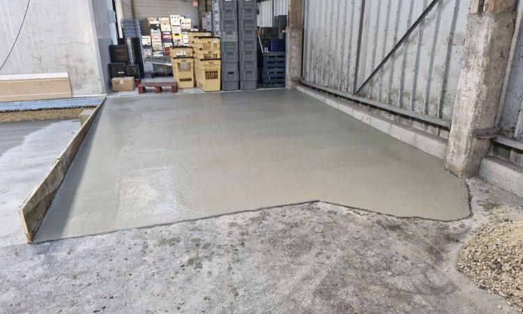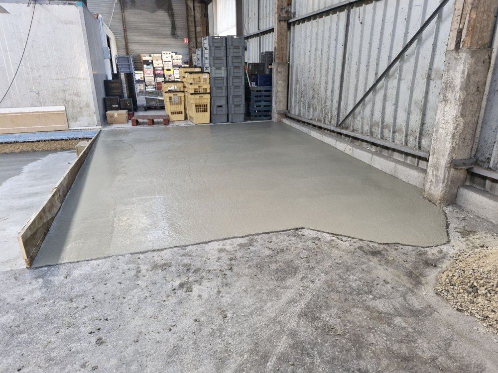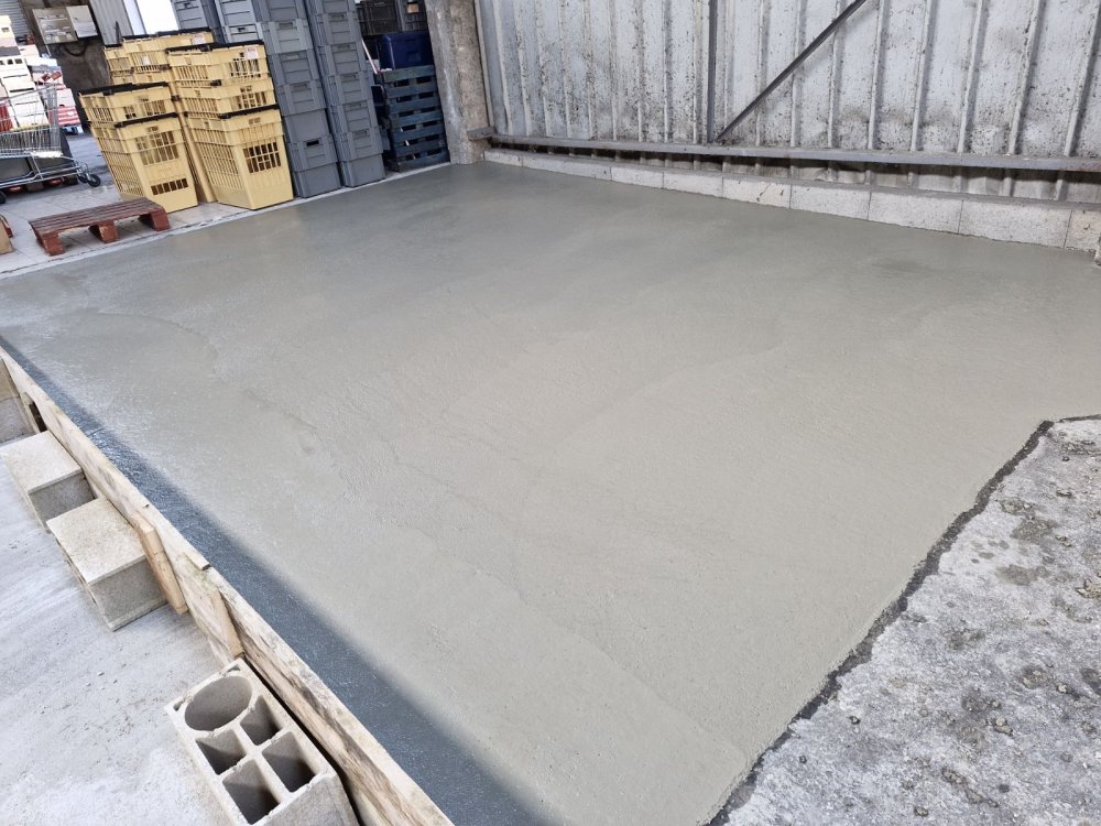 ETS Chollier Sébastien > Nos réalisations en rénovation des aménagements extérieurs > Création d une dalle pour poser une chambre réfrigérée a la banque alimentaire de Troyes