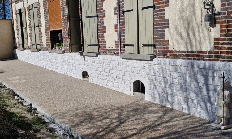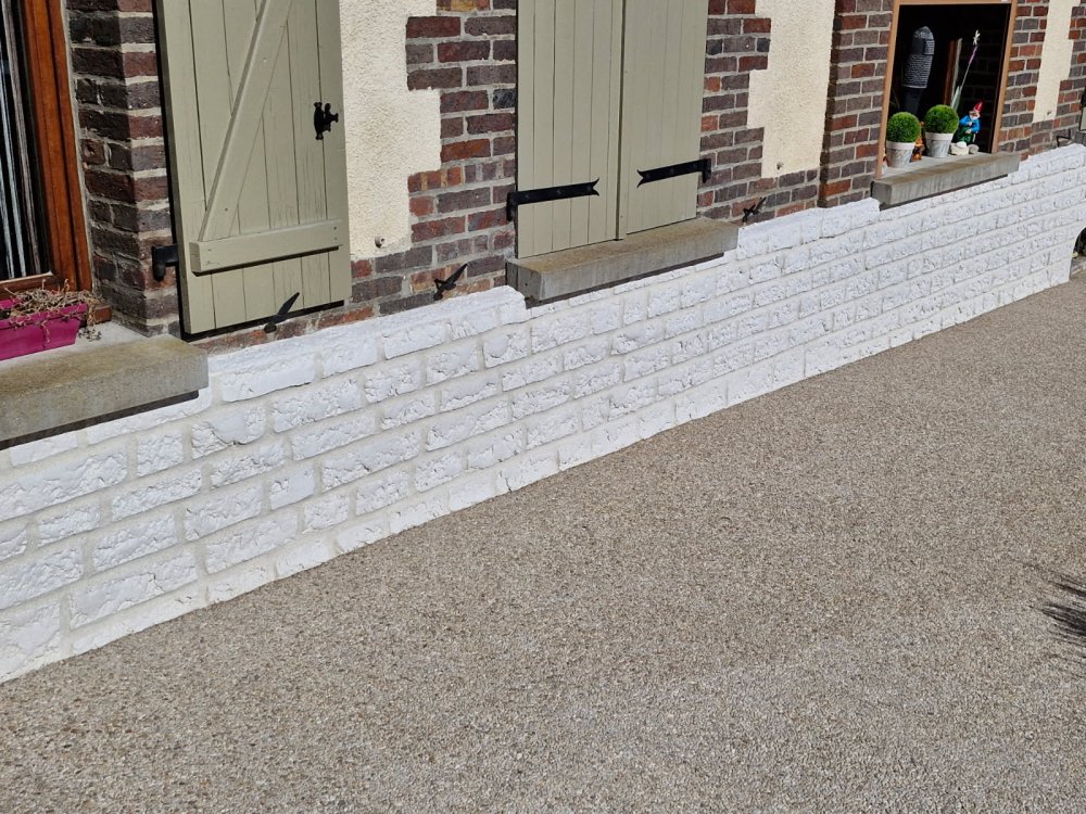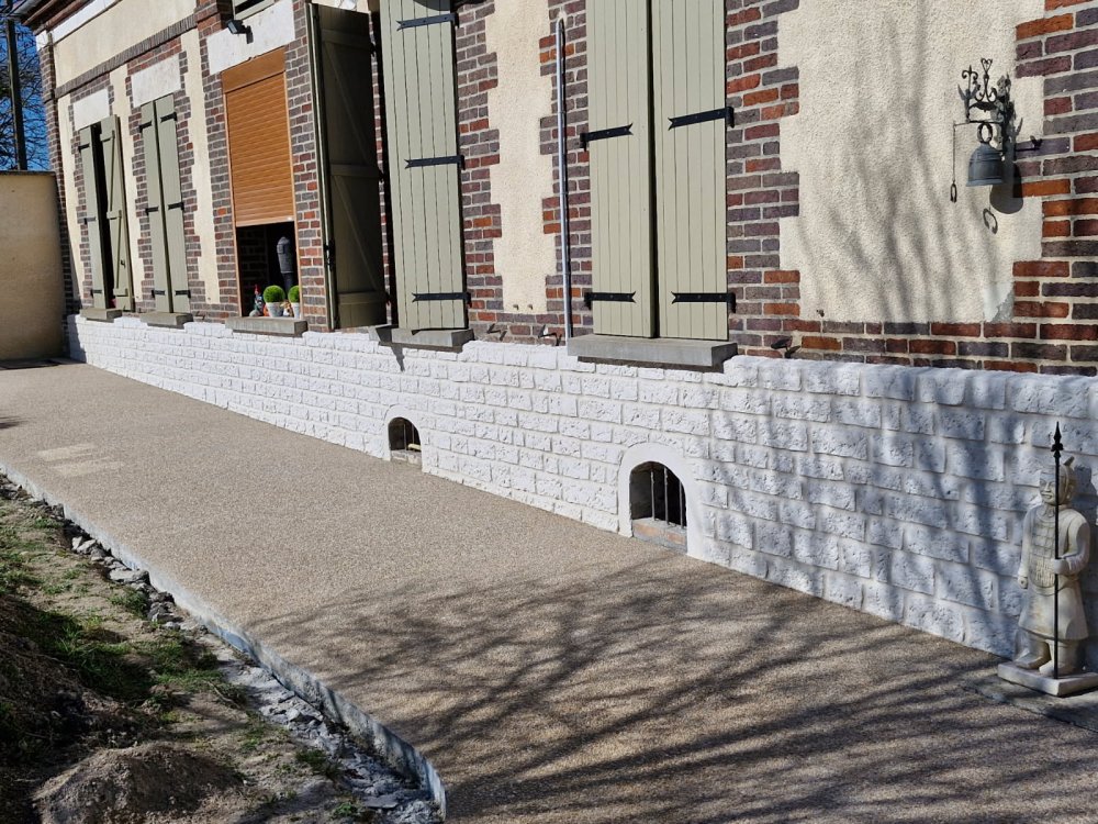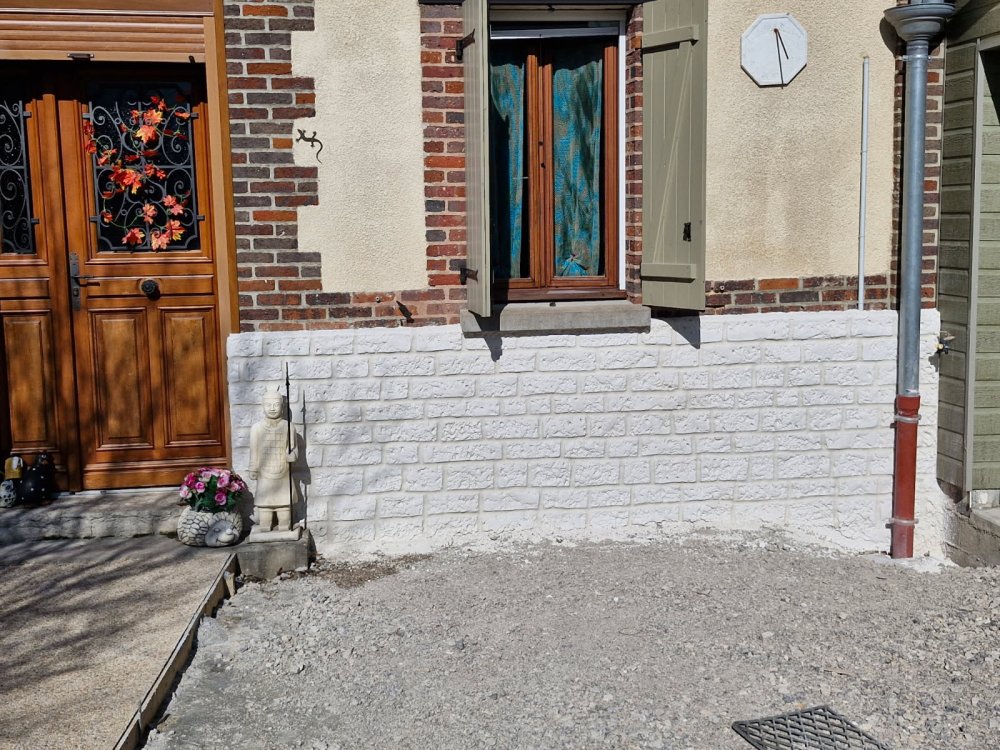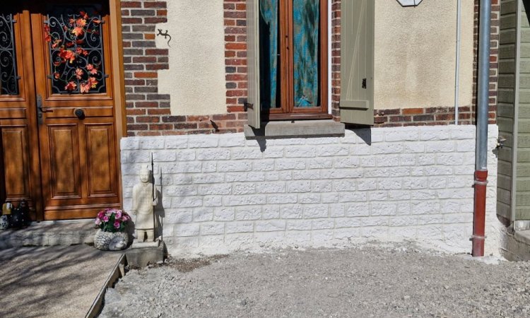 ETS Chollier Sébastien > Nos réalisations en rénovation des aménagements extérieurs > Réalisation d un sous bassement en crépis sculpté chez un particulier dans la region de Troyes